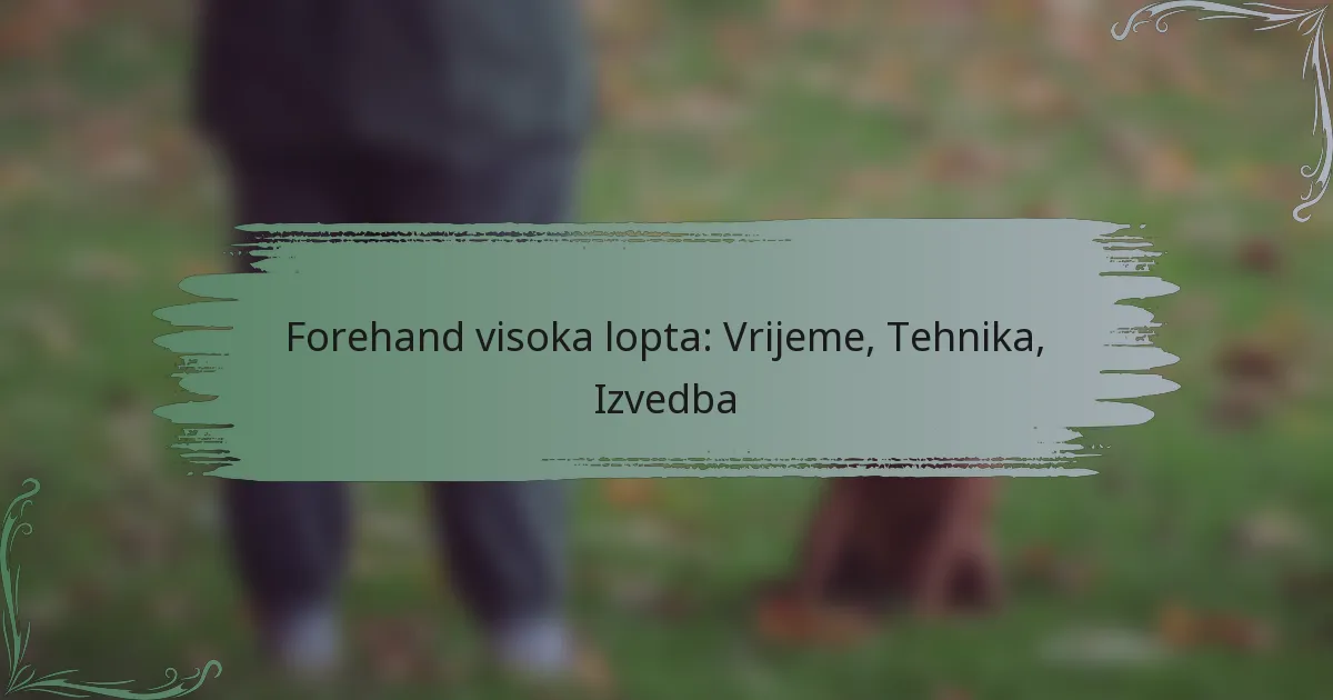 Forehand visoka lopta je vitalni teniski udarac osmišljen za upravljanje loptama koje se visoko odbijaju, omogućujući igračima da kontroliraju tempo meča protiv agresivnih protivnika. Ovladavanje vremenom i tehnikom ovog udarca uključuje fokusiranje na rad nogu, držanje reketa i mehaniku zamaha, što zajedno poboljšava dosljednost i snagu udarca. Usavršavanjem ovih elemenata, igrači mogu značajno poboljšati svoju sposobnost učinkovite izvedbe forehand visokih lopti.